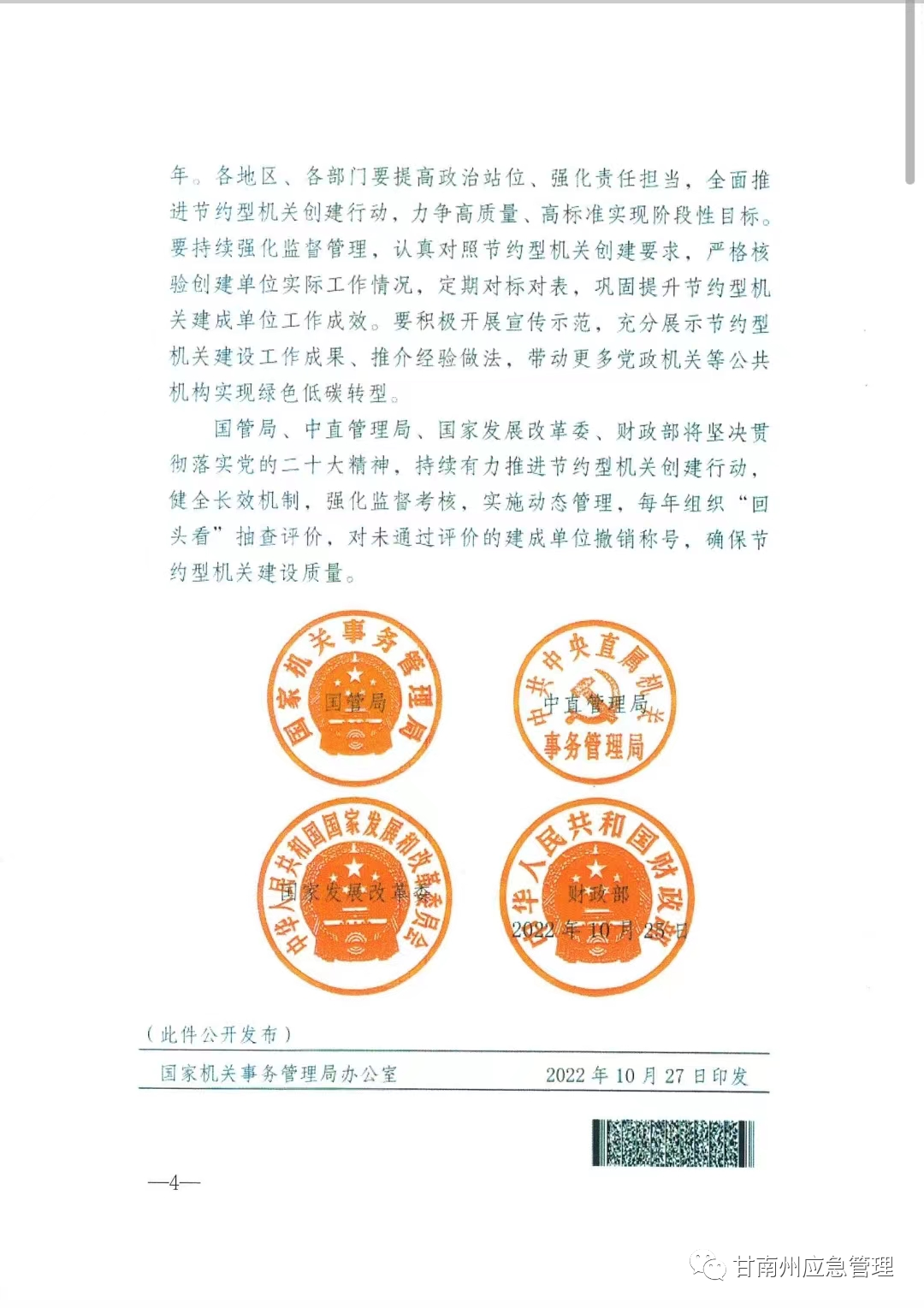 365体育旗下 近日,国家机关事务局、中共中央直属机关事务管理局、国家发展改革委员会、财政部联合下发《关于公布第二批节约型机关建成单位单位名单的通知》(国管节能【2022】334号),授予365体育旗下_365bet最新备用_365bet体育应急管理局“节约型机关”荣誉称号。