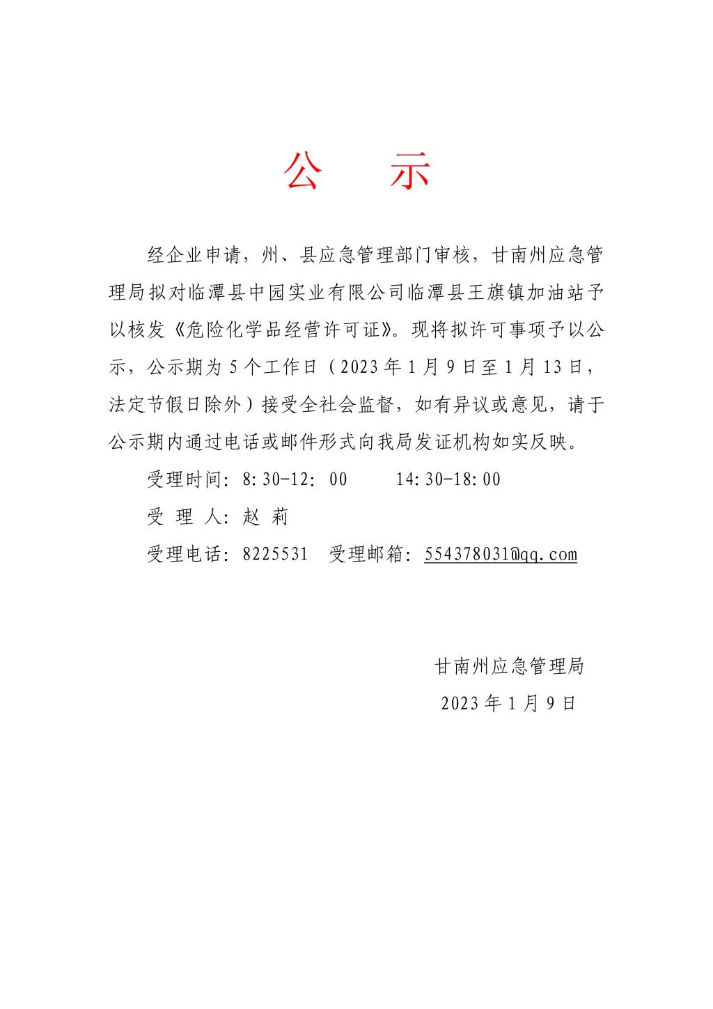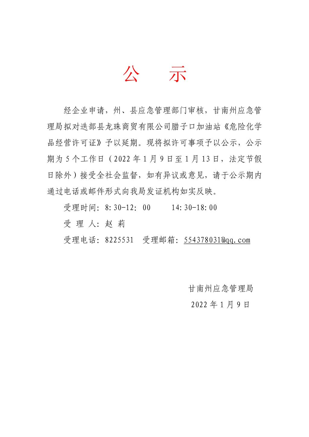 上一条:365体育旗下_365bet最新备用_365bet体育应急管理局政府网站2022年度工作报表 下一条:关于拟对365体育旗下_365bet最新备用_365bet体育建福维华商贸有限公司合作市生态产业园区(门浪滩)加油站《危险化学品经营许可证》予以核发的公示